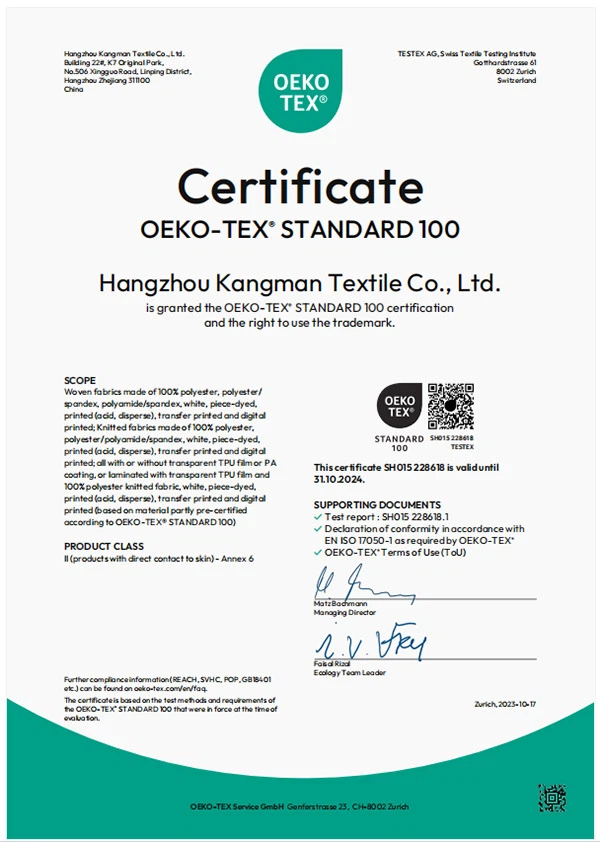 강만섬유는 30년간의 직물 날염 및 염색 분야의 풍부한 경험과 역사를 가지고 있으며, 서비스, 품질, 가격 대비 성능, 제품 혁신 및 개발을 핵심 경쟁력으로 삼고 고급 직물 제품의 연구 개발에 전념하고 있습니다. K&M 직물은 또한 종속 염색 공장, 사내 테스트 센터, 우수한 R&D 팀 및 활발한 영업 팀을 보유하고 있어 고객 요구 사항에 따라 직물을 디자인하고 개발할 수 있습니다. 동시에 우리는 다양한 종류의 직물 제품과 귀하가 선택할 수 있는 다양한 무료 A4 샘플을 보유하고 있습니다.
